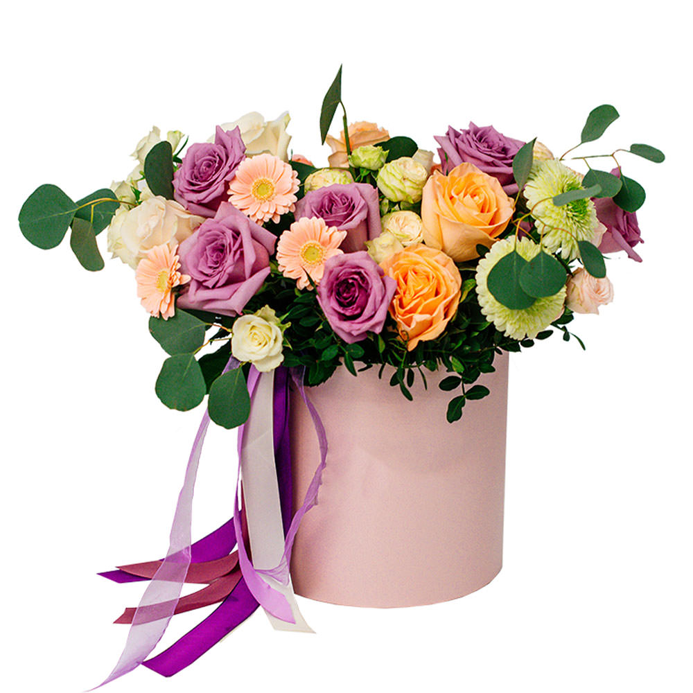 Композиция из цветов в коробке «Весенний» ждет вашего заказа: чтобы купить цветы, оформляйте заказ на сайте быстро и удобно. Также можно выбрать для заказа в Берестовице по телефону +375 (44) 786-52-49 или по почте info@loveflowers24.by.