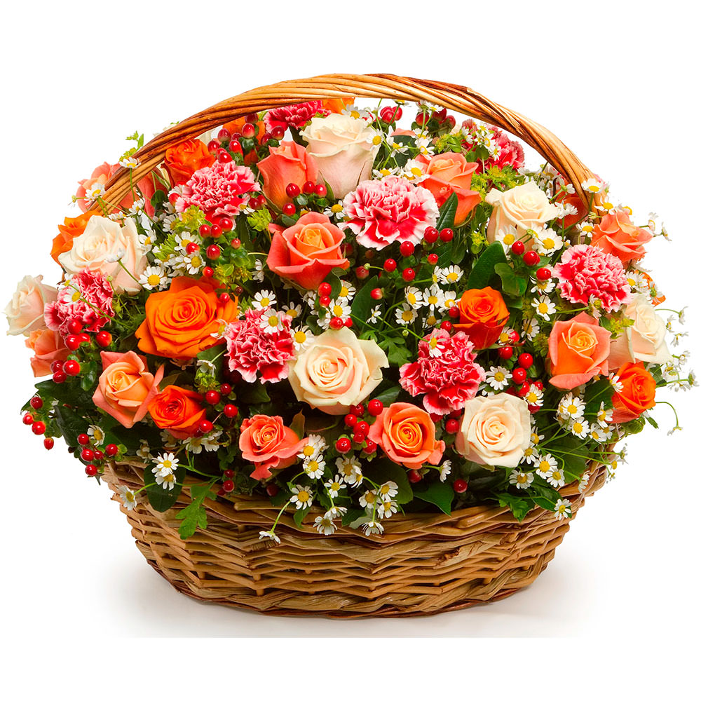 Цветы в корзинке «Гранатовый браслет» с доставкой по г Берестовица: вы можете заказать букет в цветочном гипермаркете «Цветоландия» по цене от 135 руб.