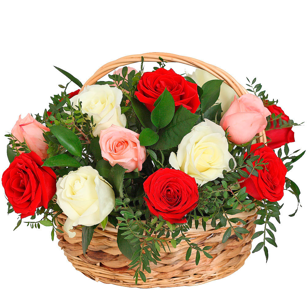 Цветы в корзинке «Поцелуй розы» с доставкой по г Берестовица: вы можете купить букет в супермаркете цветов «Цветоландия» по цене от 135 руб.