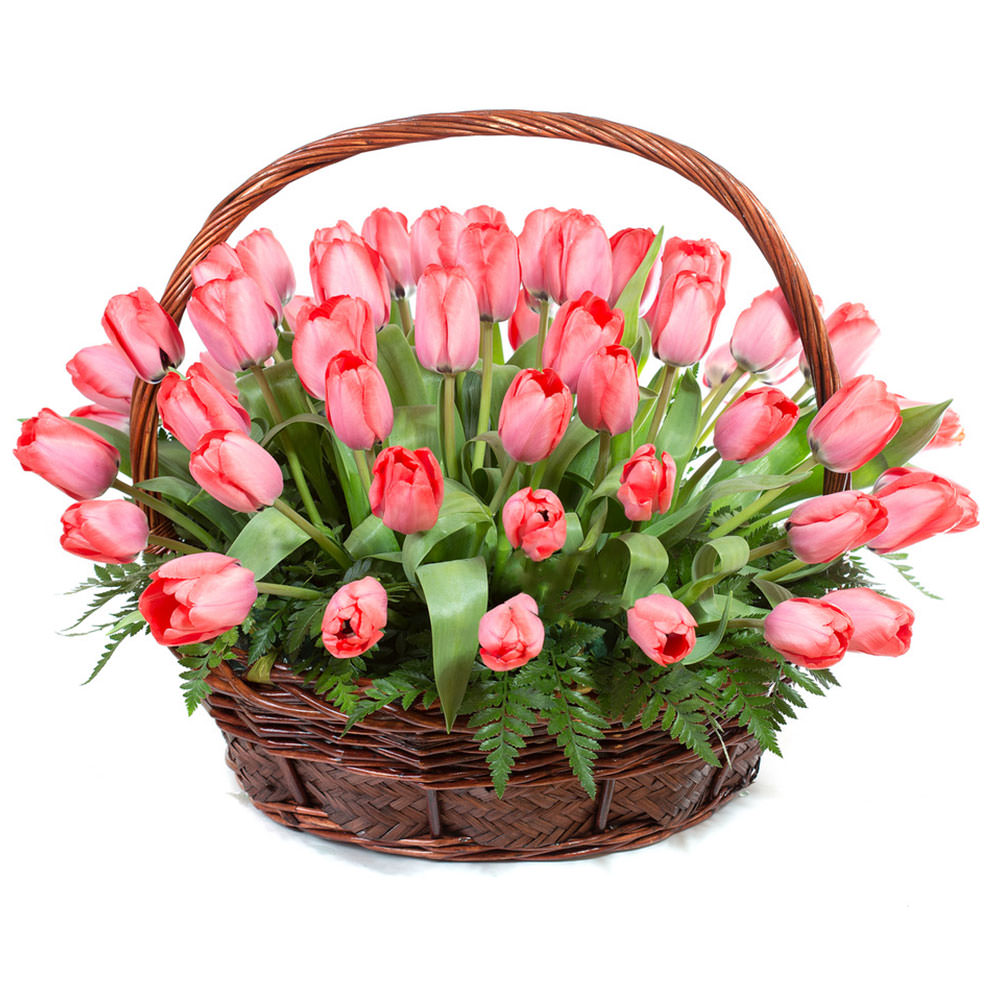 Цветы в корзинке «Розовые тюльпаны» с доставкой по г Берестовица: вы можете купить букет в супермаркете цветов «Цветоландия» по цене от 135 руб.